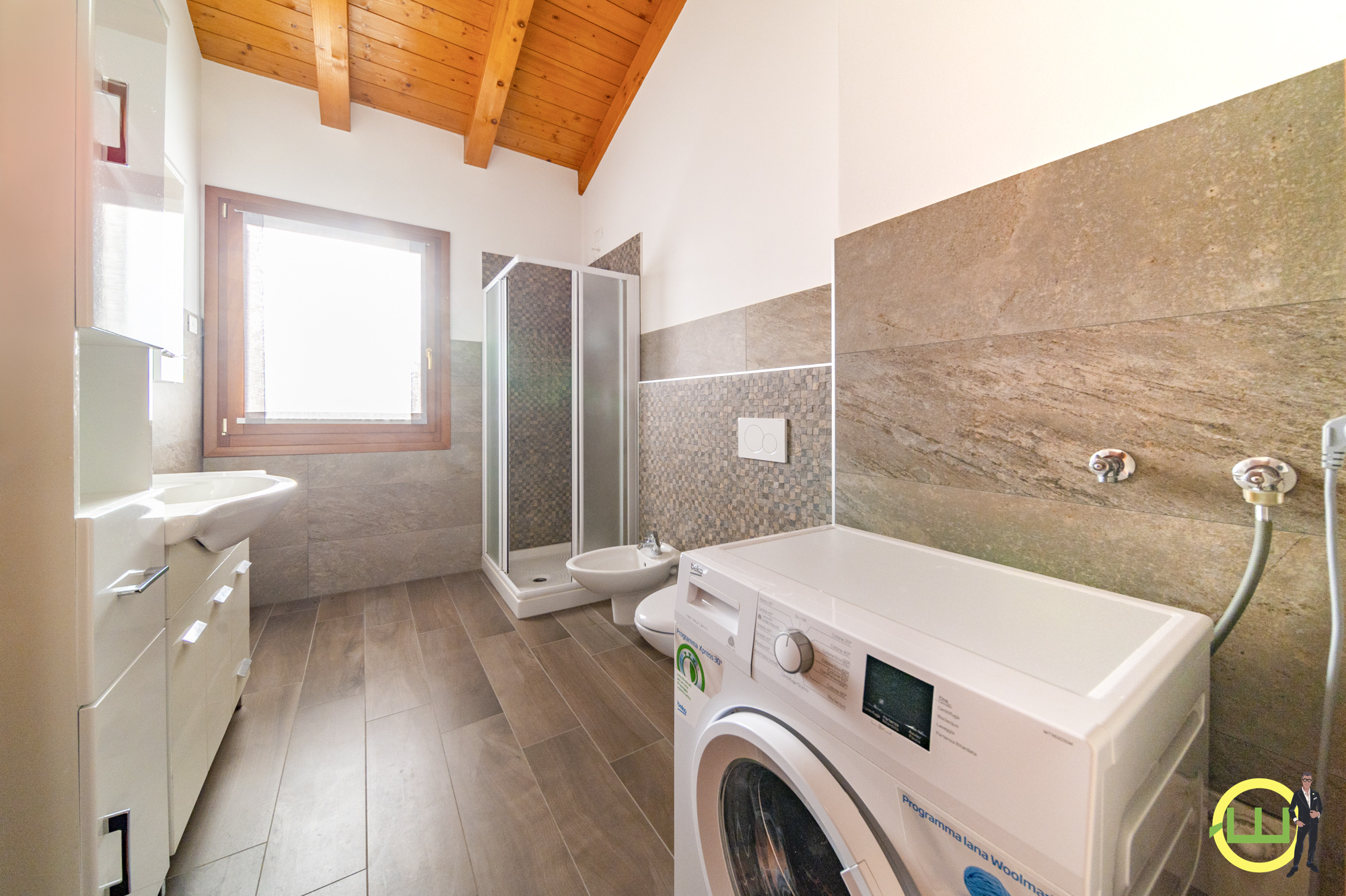 CLASSE ENERGETICA A1 - In centro a Teor e a due passi da tutti i principali servizi proponiamo in esclusiva questo favoloso appartamento situato al secondo ed ultimo piano di un'elegante e recente palazzina. Lasciandoci alle spalle la porta blindata accediamo al moderno ambiente open space che racchiude il soggiorno composto da divano e mobile tv, il tavolo da pranzo e la cucina completa di tutti gli elettrodomestici. Proseguendo verso la zona notte incontriamo un ampio disimpegno che porta al grande bagno finestrato e alla spaziosa camera matrimoniale dotata di portafinestra che si apre sul comodo terrazzo. Completano l'offerta un parcheggio coperto e una cantina. L'immobile è dotato di infissi in legno doppio vetro con zanzariere e scuretti, impianto di riscaldamento autonomo a pavimento, predisposizione per l'impianto d'allarme, videocitofono, climatizzatore caldo/freddo, pannelli solari termici a servizio esclusivo dell'appartamento e viene venduto arredato. La posizione privilegiata permette di raggiungere a piedi i principali servizi quali bar, banca, macelleria/gastronomia, ferramenta, panificio/pasticceria, posta, uffici comunali, scuole e impianti sportivi. Risulta essere un'ottima soluzione per chi cerca eleganza e modernità senza rinunciare al calore dei soffitti in legno e soprattutto alla comodità e al risparmio energetico visti i bassissimi costi di gestione. Da visitare. TOP!!!