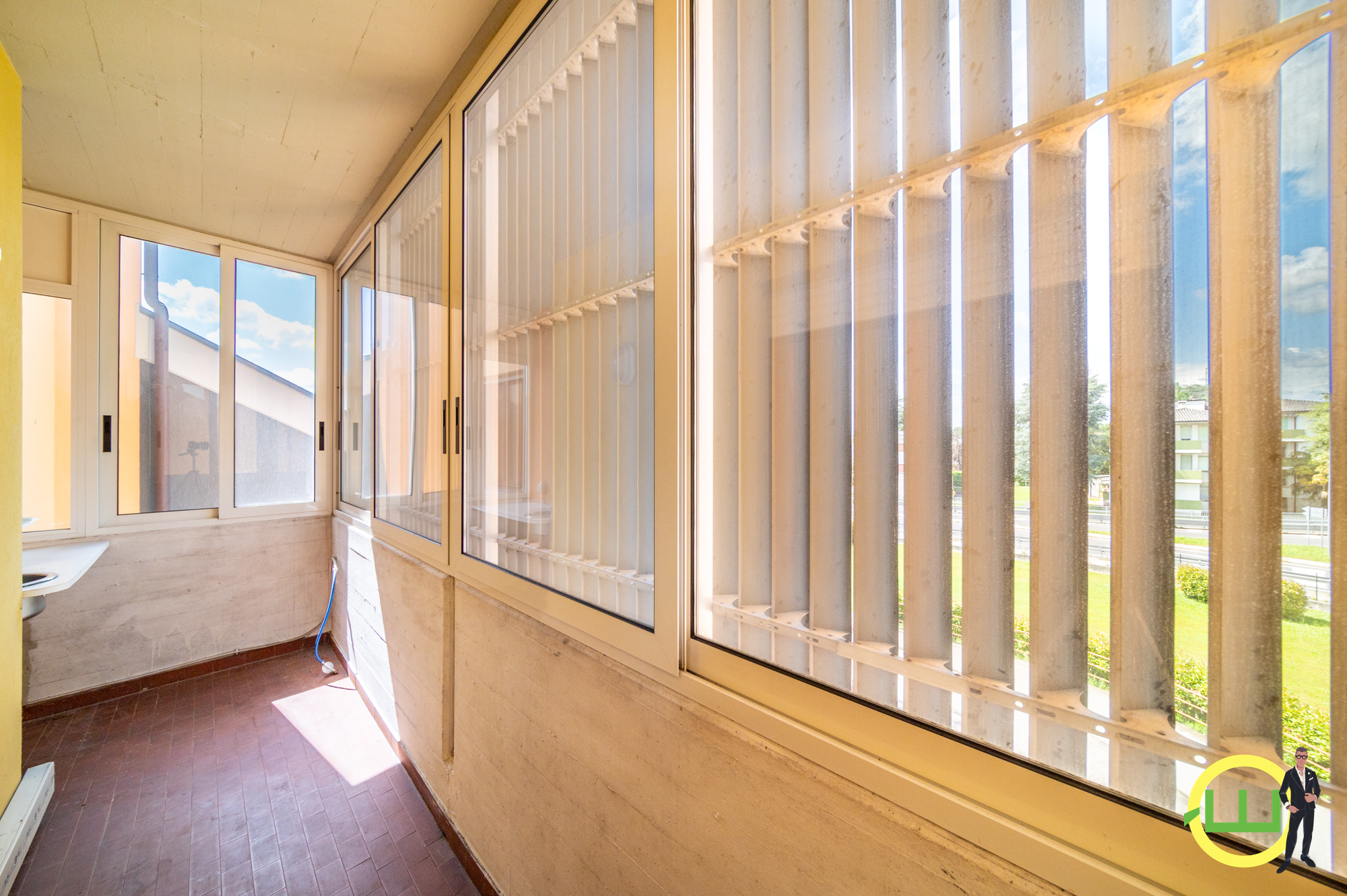 A ridosso del centro, in posizione strategica per la viabilità, al secondo piano di una palazzina del 1975 ben curata e manotenuta, proponiamo in esclusiva questo luminoso appartamento con doppio affaccio: su Viale Venezia e Via Della Rosta. La robusta porta blindata si apre nel disimpegno che funge da atrio direttamente collegato al soggiorno: l'accoglienza è calda e piacevole grazie ai materiali delle rifiniture e soprattutto al color miele del legno utilizzato per il rivestimento dei pavimenti e dei mobili. Il locale prende luce dalla portafinestra della terrazza affacciata sulla tranquilla via della Rosta, mentre a destra la stanza della cucina, fornita di tutti gli elettrodomestici e del tavolo con sedie, comunica con la veranda: spazio utilissimo adibito anche a lavanderia. Il bagno è stato recentemente ristrutturato, è finestrato e offre il doppio vantaggio della doccia e della vasca. La camera matrimoniale propone una soluzione d'arredo unica e particolare grazie al mobilio pensato e realizzato sia con ottimi materiali che con idee originali ma anche pratiche. La seconda camera presenta scaffalatura e ripiani da cui magicamente possono scendere sia la scrivania che il letto occupando così l' adeguato spazio al centro della stanza. Un prezioso ripostiglio completa l'appartamento e si trova in posizione quasi invisibile a sinistra dell'atrio. Dal pianerottolo si accede al vano caldaia, mentre nello scantinato del palazzo la cantina regala ulteriore spazio utile. Completano la proposta due posti auto di cui uno coperto. L'ingresso del palazzo si trova sul Viale San Daniele e si presenta ampio ed arioso con la cabina dell'ascensore e la doppia porta delle scale. L' area verde ad uso comune pone una giusta distanza con il Viale Venezia e consente uno sfogo all'aperto in zona sicura. Considerando anche la vicinanza a tutti i servizi e alla stazione ferroviaria, la posizione sulla direttrice Udine-Pordenone, ma anche Dan Daniele del Friuli, Lignano e Palmanova, il rapporto qualità/prezzo di questa proposta è davvero invidiabile. Top!