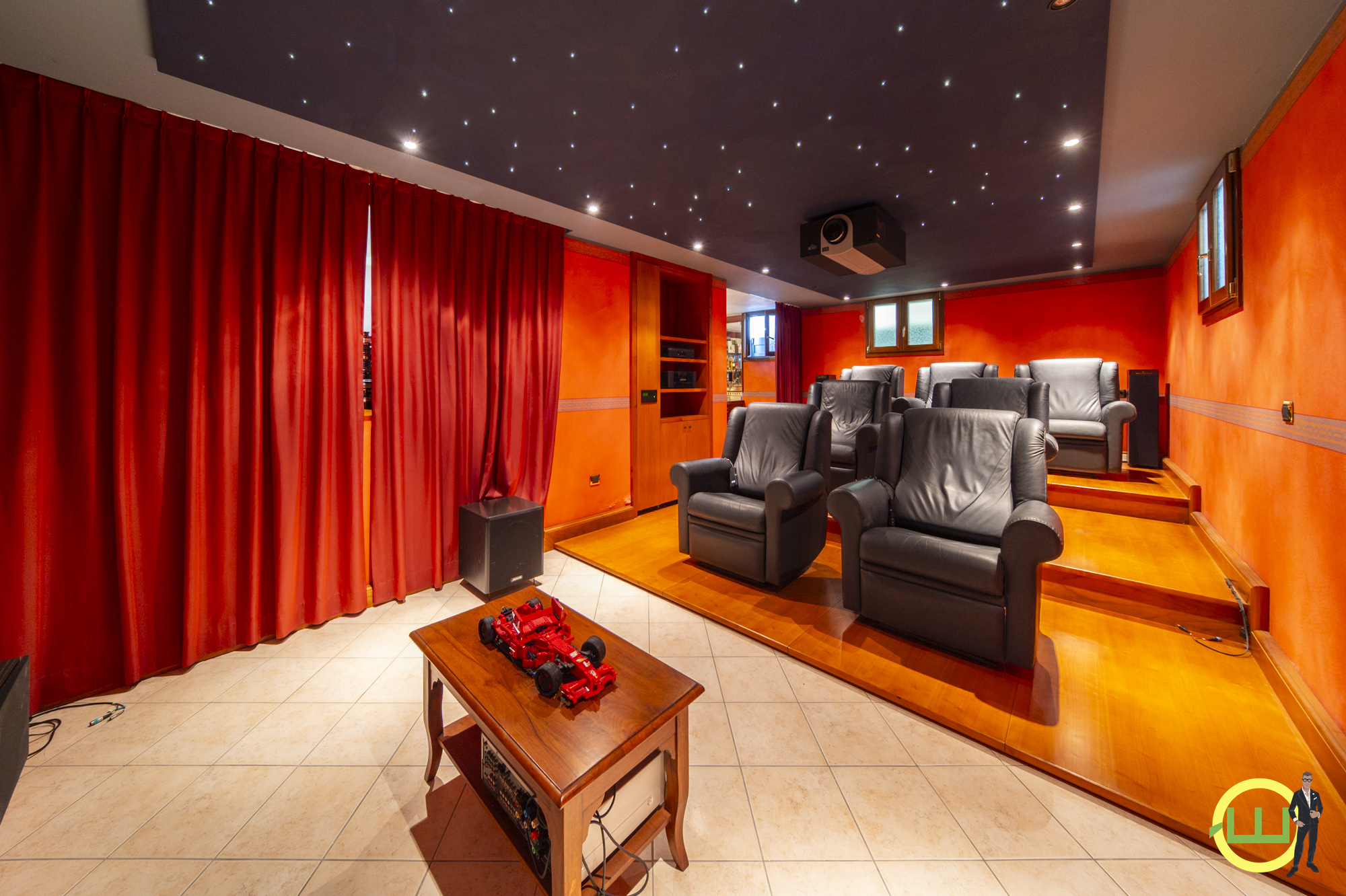 Una semplice visita consente di notare in entrambe le costruzioni l'ottima suddivisione degli spazi, la preziosa scelta dei materiali, la cura dei particolari, ma anche l'attento studio rivolto alle comodità e sicurezza: impianto di filodiffusione in ogni ambiente e sistema di videosorveglianza con allarme controllato con domotica. Un bel portico ci accompagna all'abitazione principale il cui piano terra si presenta già indipendente grazie alla cucina attrezzata ed abitabile, il soggiorno con caminetto a vista, l'elegante camera matrimoniale, il bagno finestrato e con doccia. Il seminterrato ci regala la sorpresa della sala cinema con angolo bar, mentre il primo piano accoglie la camera padronale con bagno ed altre due camere, uno studio ed un altro bagno. Veramente inaspettate le caratteristiche dell'accessorio: di ancora più recente edificazione, presenta una parte molto ampia con soffitto alto utilizzabile a piacimento e per organizzare feste anche importanti. Infatti nel locale attiguo c'è un'ampia e pratica cucina attrezzata con elettrodomestici industriali e nel retro ci sono il bagno ed una lavanderia, mentre nel seminterrato è presente una favolosa cantina a temperatura controllata. Non manca il soppalco che consente la vista sul salone ed ospita il biliardo. A questo punto il parco: piantumato e curato nei dettagli dona un ulteriore tocco di signorilità ed eleganza ad una proprietà raffinata e moderna allo stesso tempo. Proposta dal rapporto qualità prezzo di notevole interesse per una meravigliosa e piacevolissima soluzione abitativa. Top!