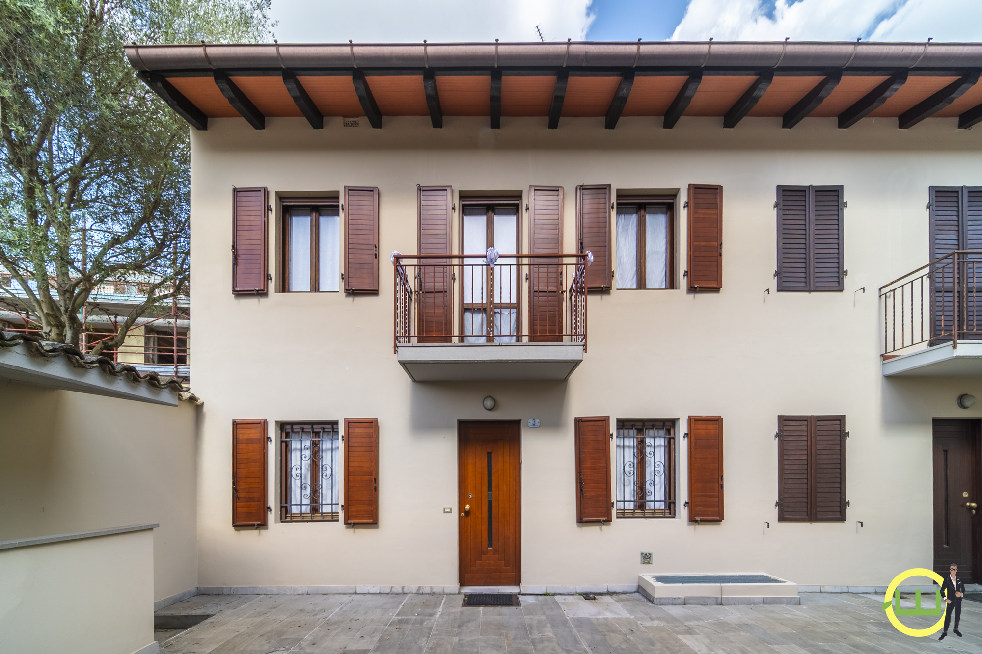 In esclusiva proponiamo questa splendida villa in corte, andiamo con ordine: si accede alla villa tramite una corte riservata e sicura, attraversando la porta blindata ci troviamo nella fantastica zona giorno open suddivisa in spazio cucina all'americana con penisola e zona divani (come si può vedere dalle immagini la zona divani è fatta su misura in legno massiccio per accogliere le persone in momenti conviviali o di relax), sempre al piano c'è un bagno lavamani. Salendo al primo piano ci sono le camere di cui 2 matrimoniali con terrazzo e una stanza che può essere considerata come studiolo o cameretta d'emergenza, uno splendido bagno finestrato chiude il giro nella zona notte. Al piano seminterrato c'è lavanderia con doccia una stanza comodissima da utilizzare come meglio si crede .....palestra, sauna, taverna o altro e garage enorme dove ci sta comodamente qualunque auto più eventualmente moto, bici etc etc e, c'è un ulteriore cantina comodissima. La casa è in perfette condizioni, con bagno rifatto un paio di anni fa, rivisti gli scuretti, impianto clima recentissimo, casa con bassissimi costi di gestione, viene venduta parzialmente arredata, opportunità unica........ per appuntamenti solo veramente interessati.